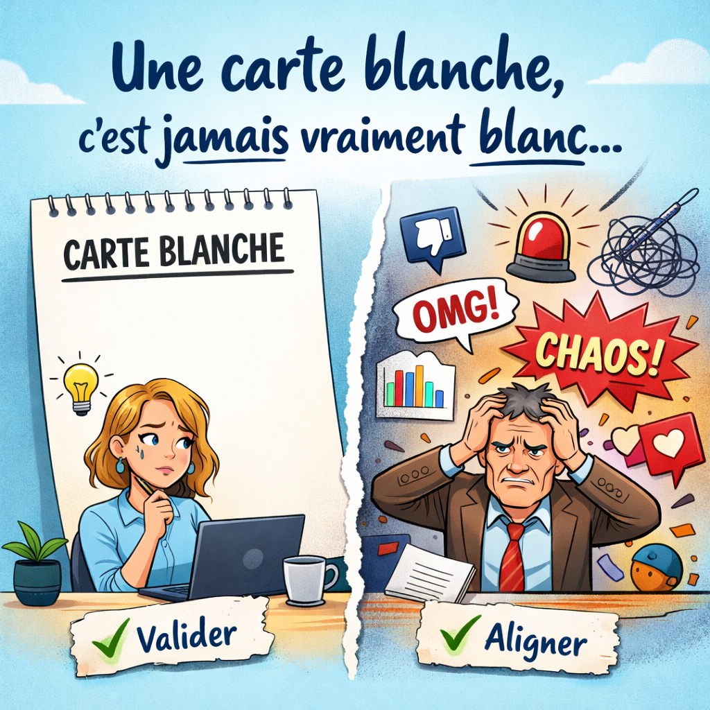 Cette expérience m’a appris une chose essentielle : une carte blanche n’en est jamais vraiment une. Depuis, j’applique deux principes simples. D’abord, clarifier précisément ce que le client attend réellement avant de commencer. Ensuite, faire valider les idées principales avant de les mettre en œuvre. Cette étape demande parfois un peu plus de temps, mais elle permet de construire une relation de travail saine et d’éviter bien des incompréhensions.